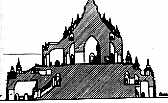 Il était entouré d'une enceinte en forme de polygone à quinze côtés, percé de cinq