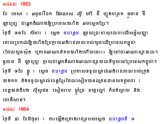 3 juin : couronnement de Norodom I, avec le double hommage de
